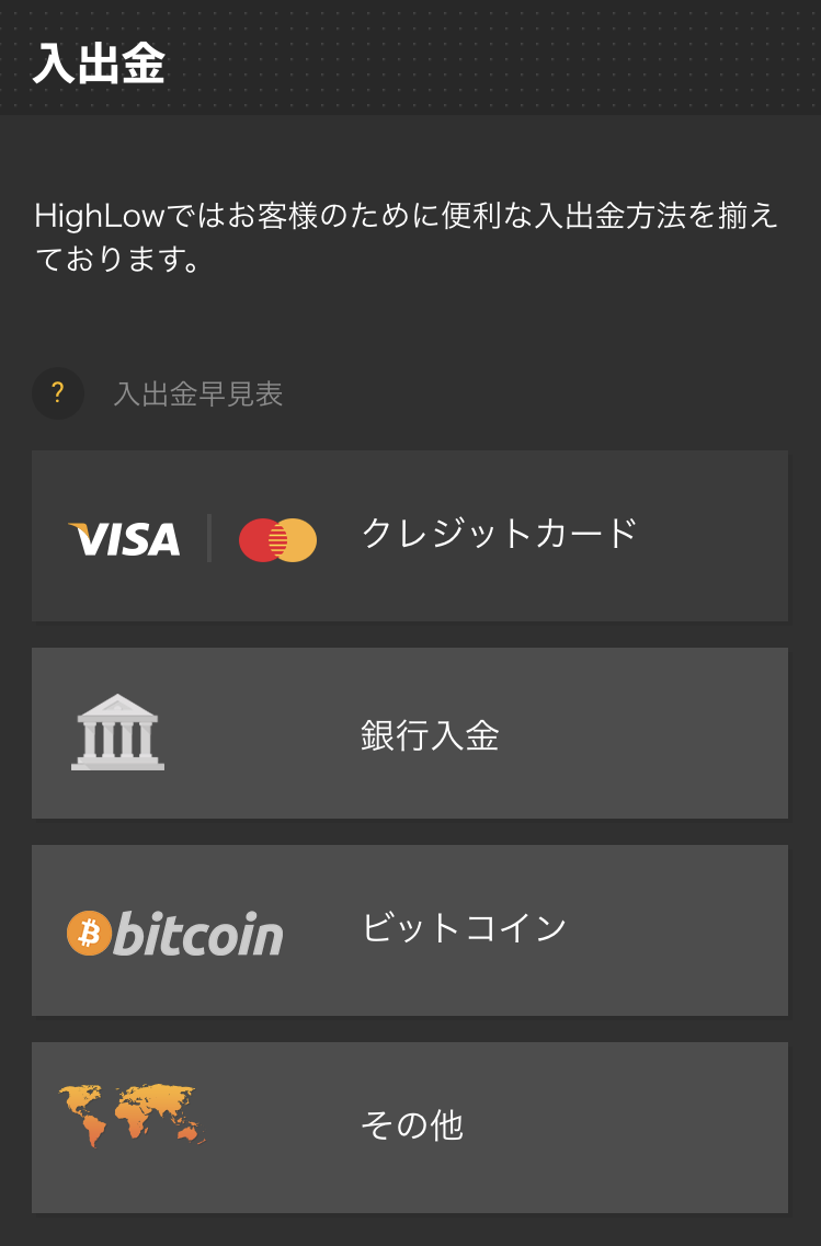 HIGHLOWの入出金について