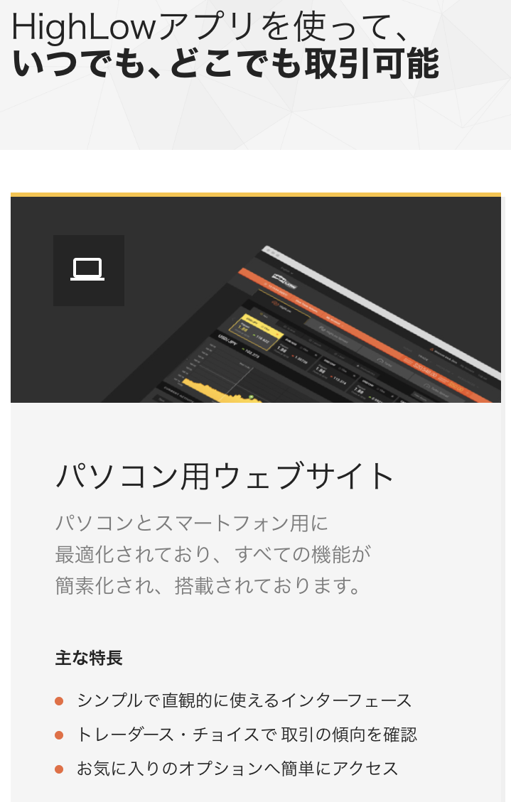 HIGHLOWはパソコンでもスマホでも簡単に取引可能